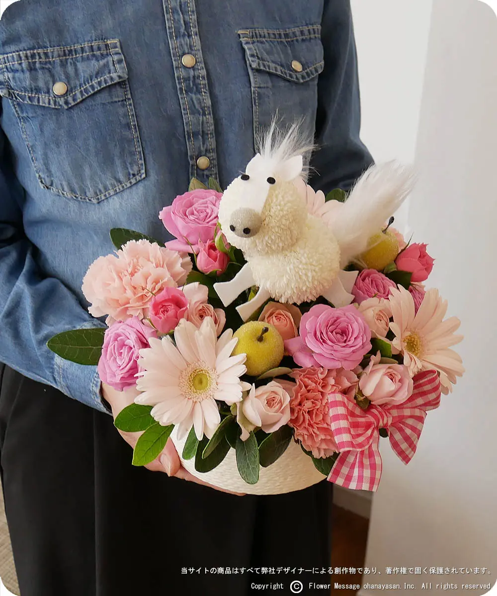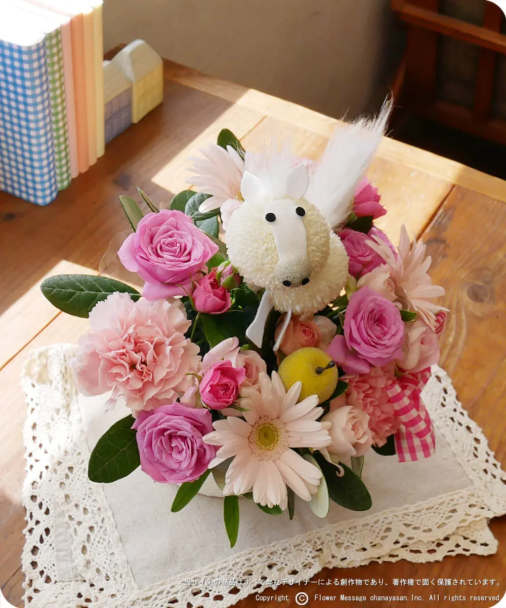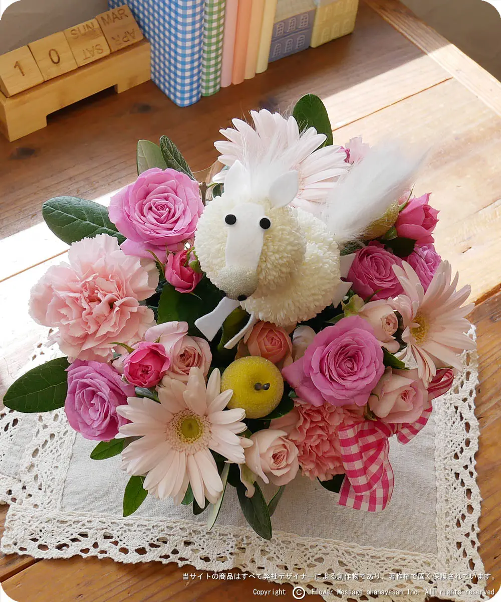 | ホーム > 動物のフラワーギフト > 花うま・ポニーちゃん(ピンク) | |||