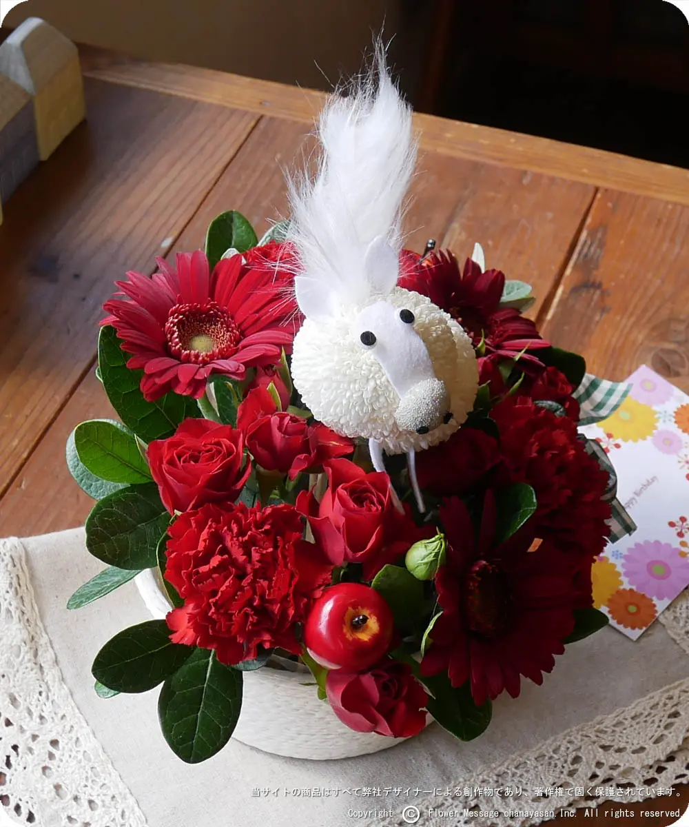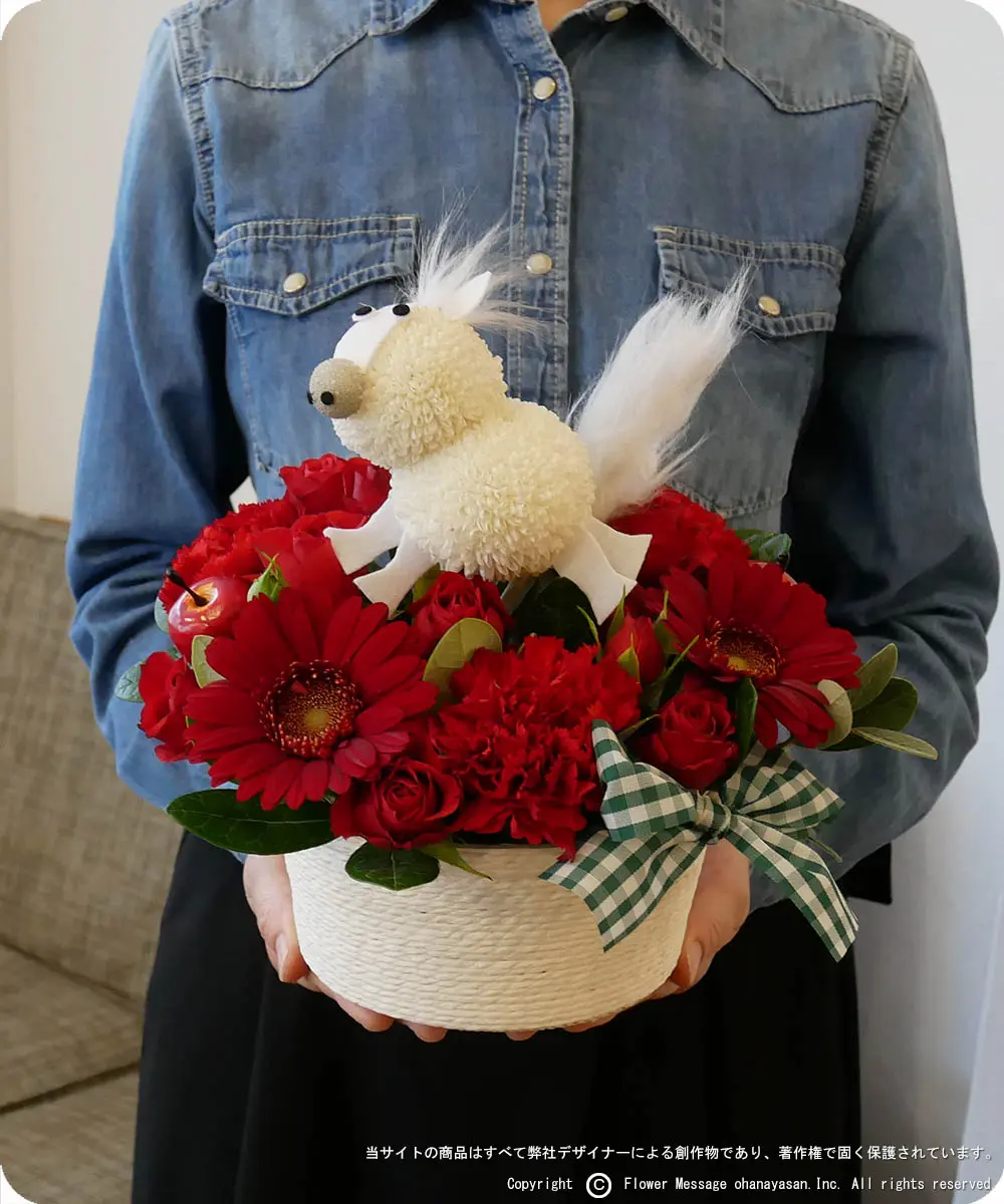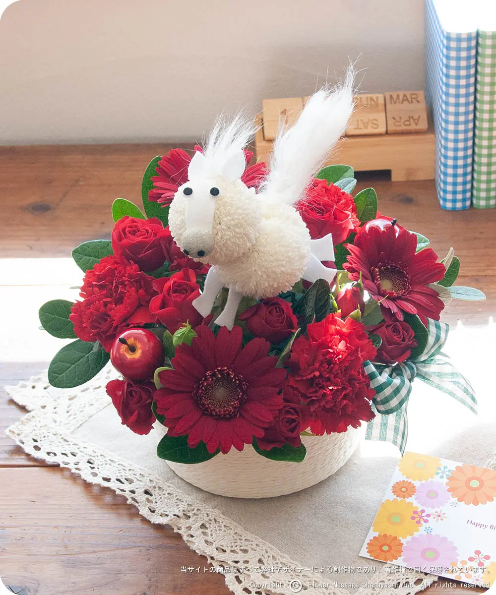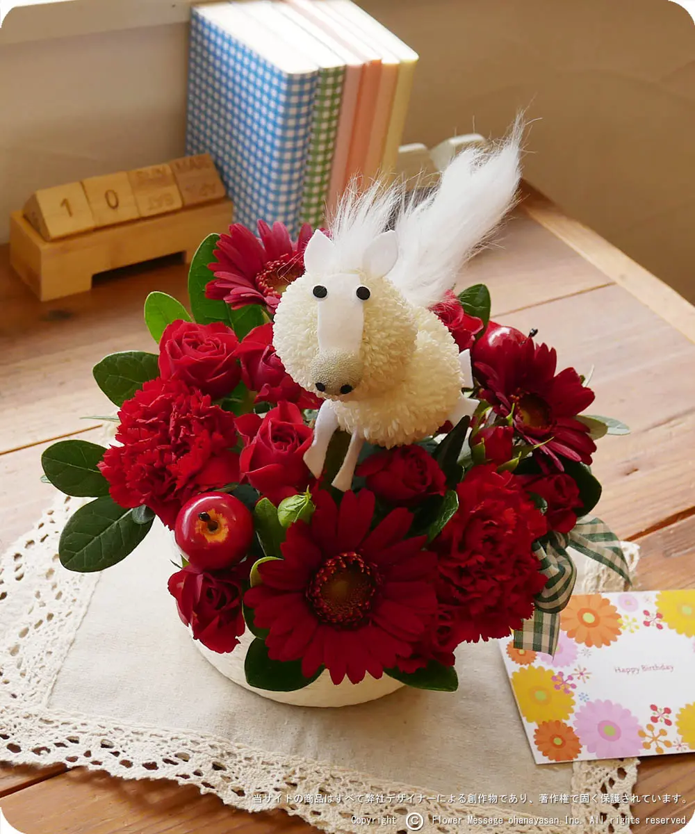 | ホーム > 動物のフラワーギフト > 花うま・ポニーちゃん(レッド) | |||