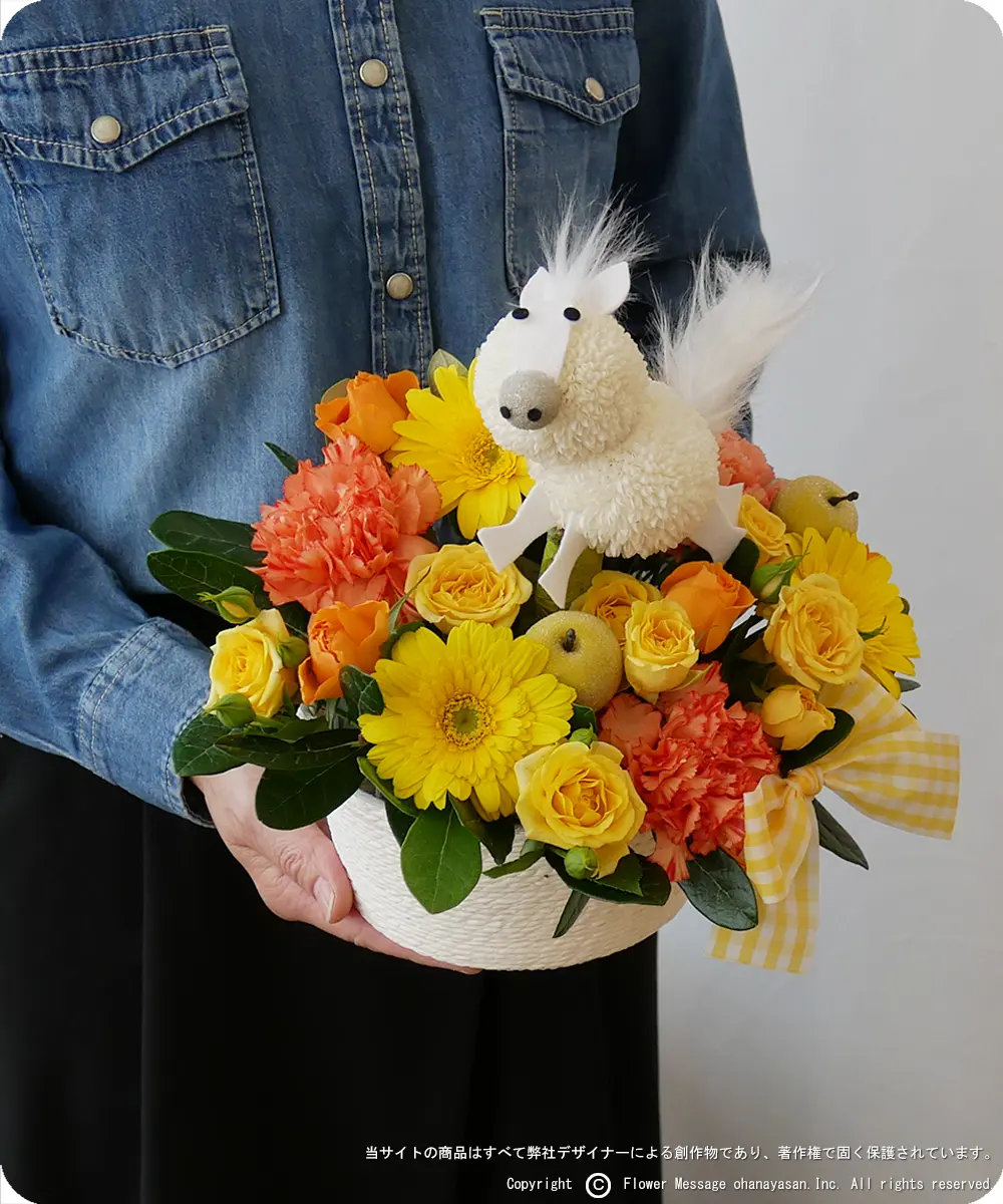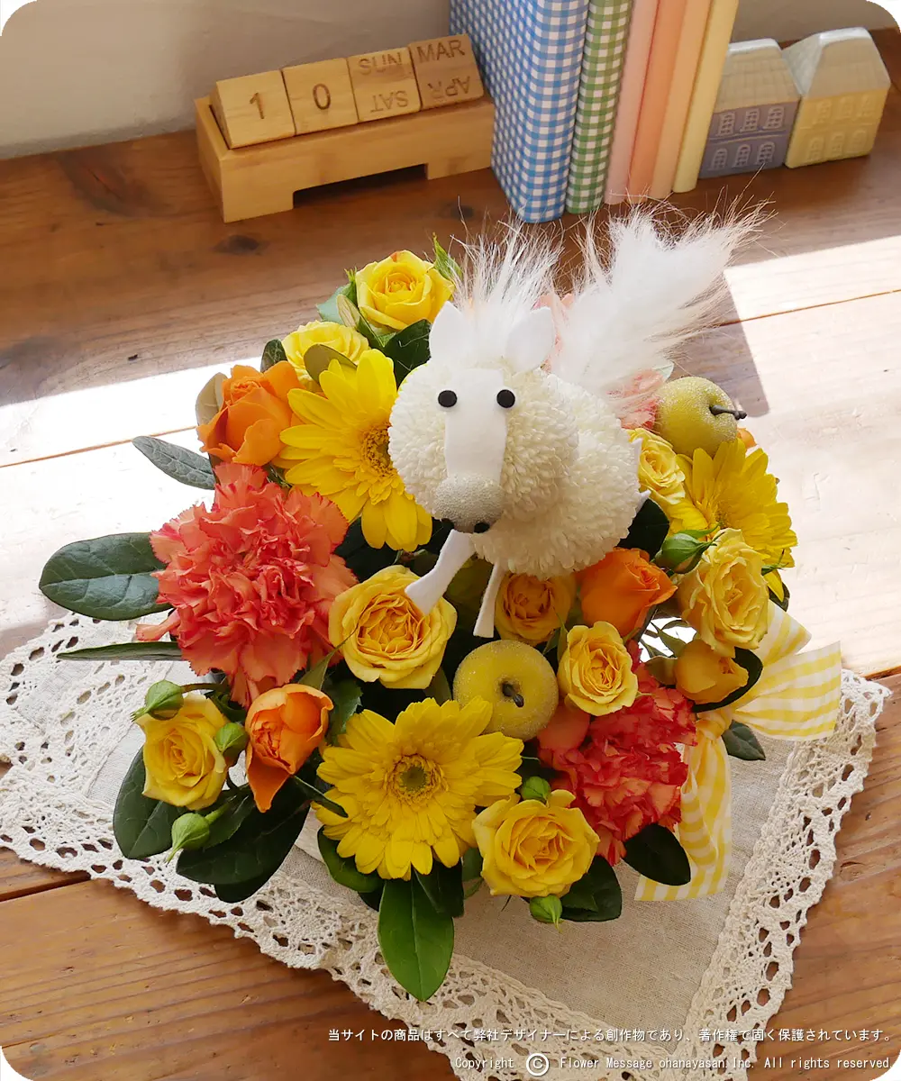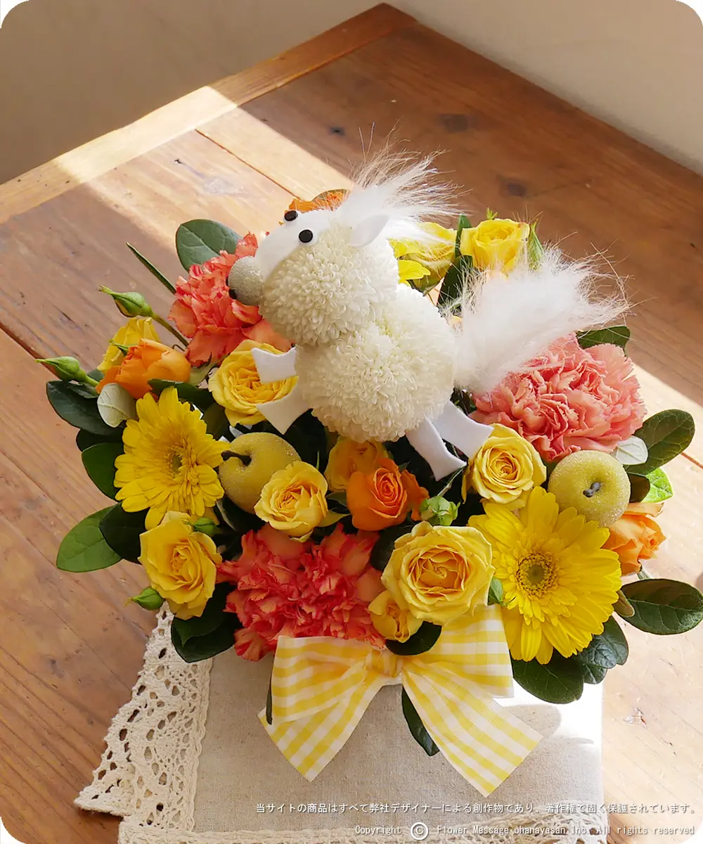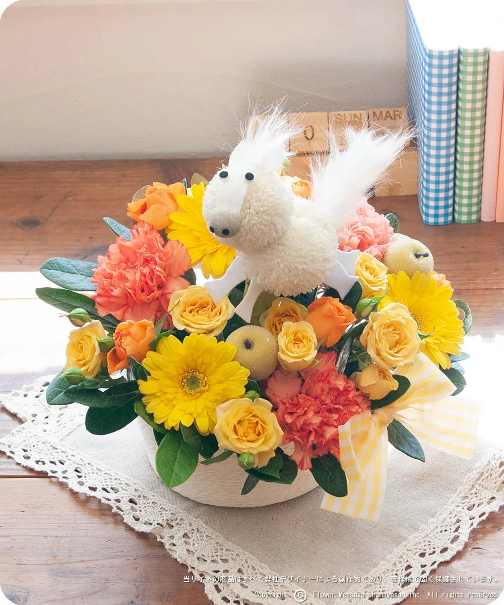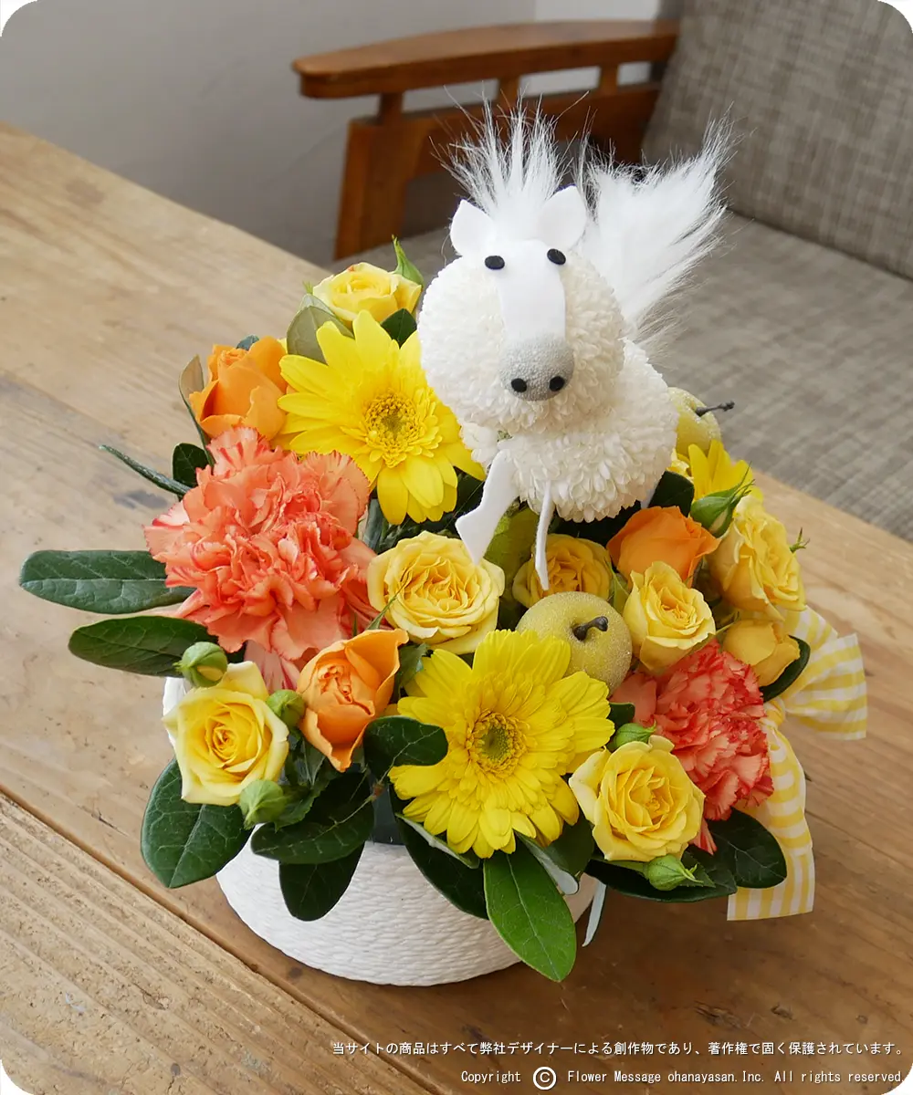 | ホーム > 動物のフラワーギフト > 花うま・ポニーちゃん(イエロー) | |||